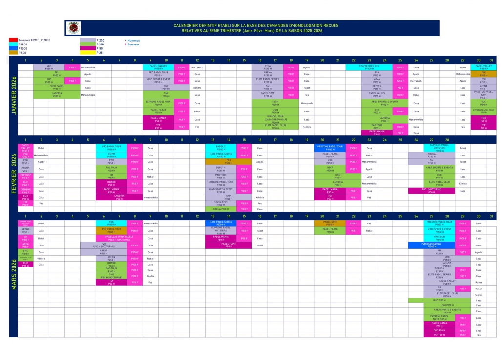 Calendrier des Tournois Padel 2e trimestre de la saison 2025-2026
