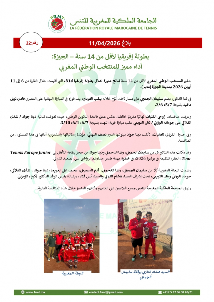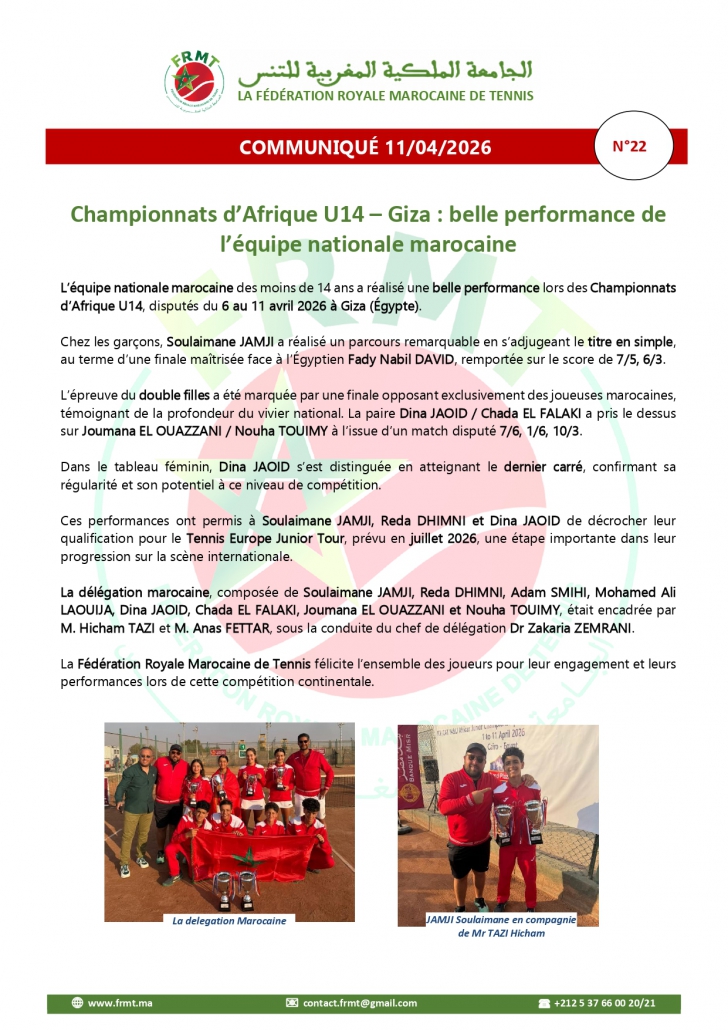 Championnat d’Afrique U14: belle performance de l’équipe nationale marocaine