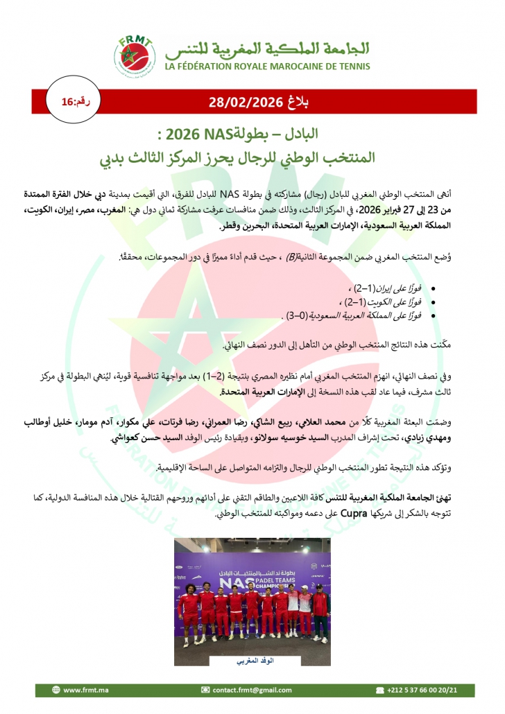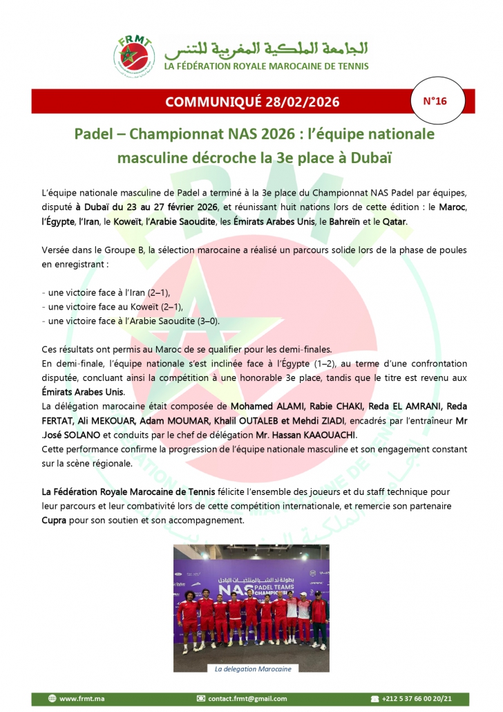 Championnat NAS 2026 : l’équipe nationale masculine décroche la 3e Place