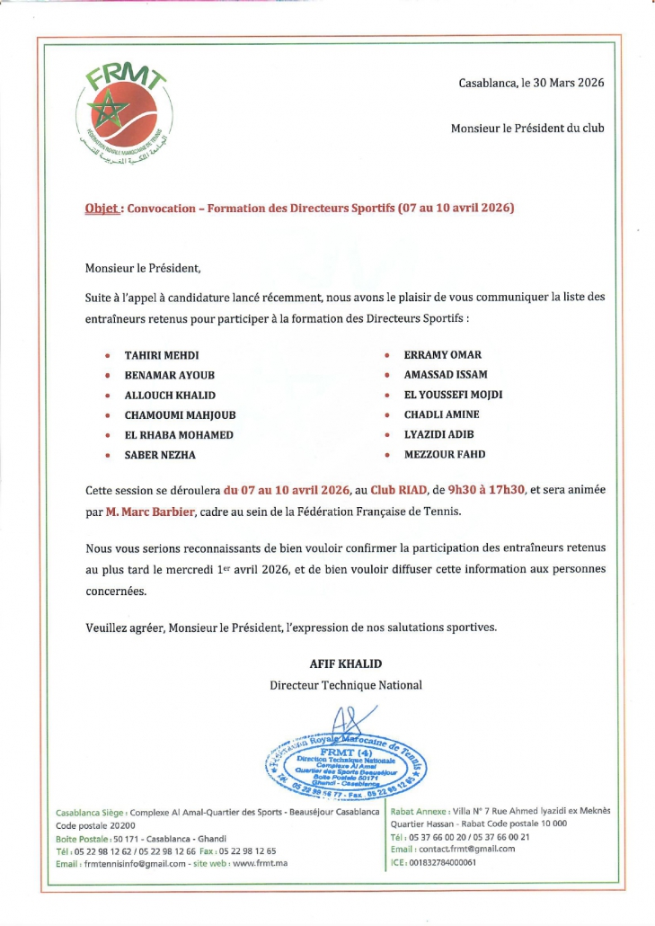 Convocation : Formation des directeurs sportifs