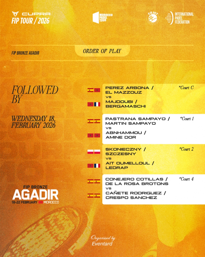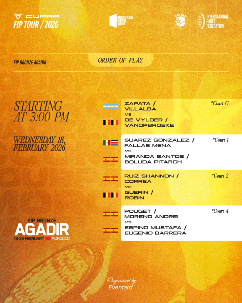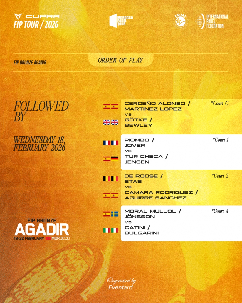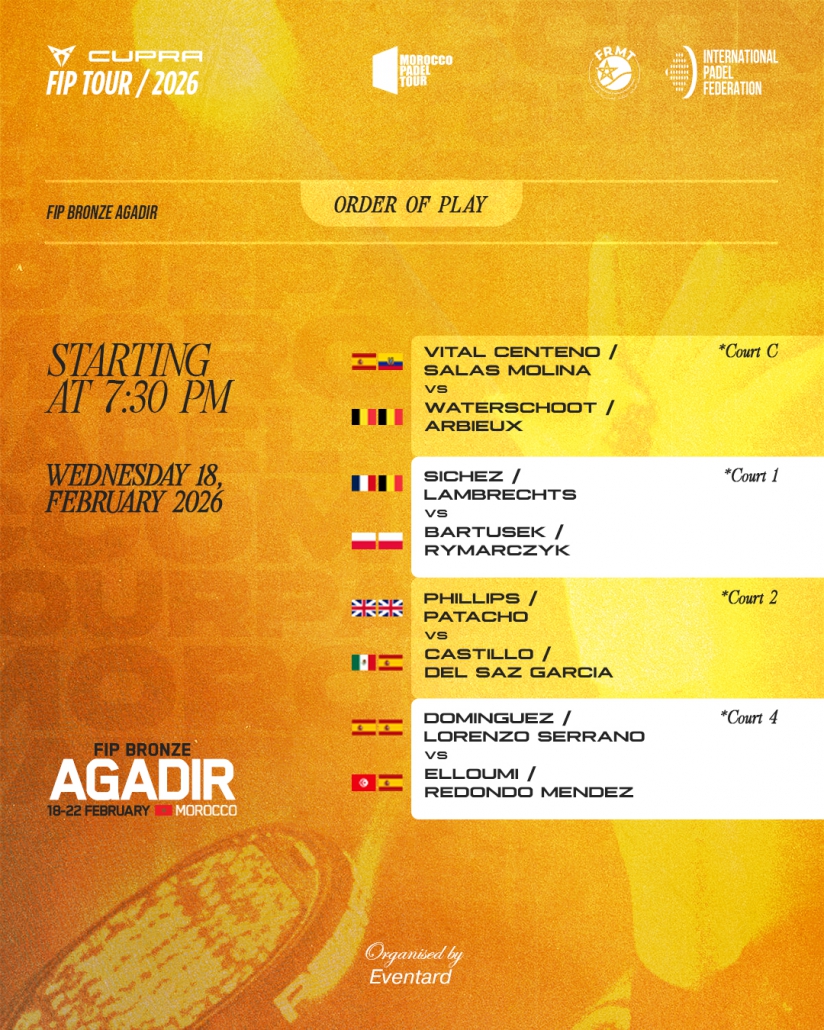 Order of play wednesday 18, february 2026