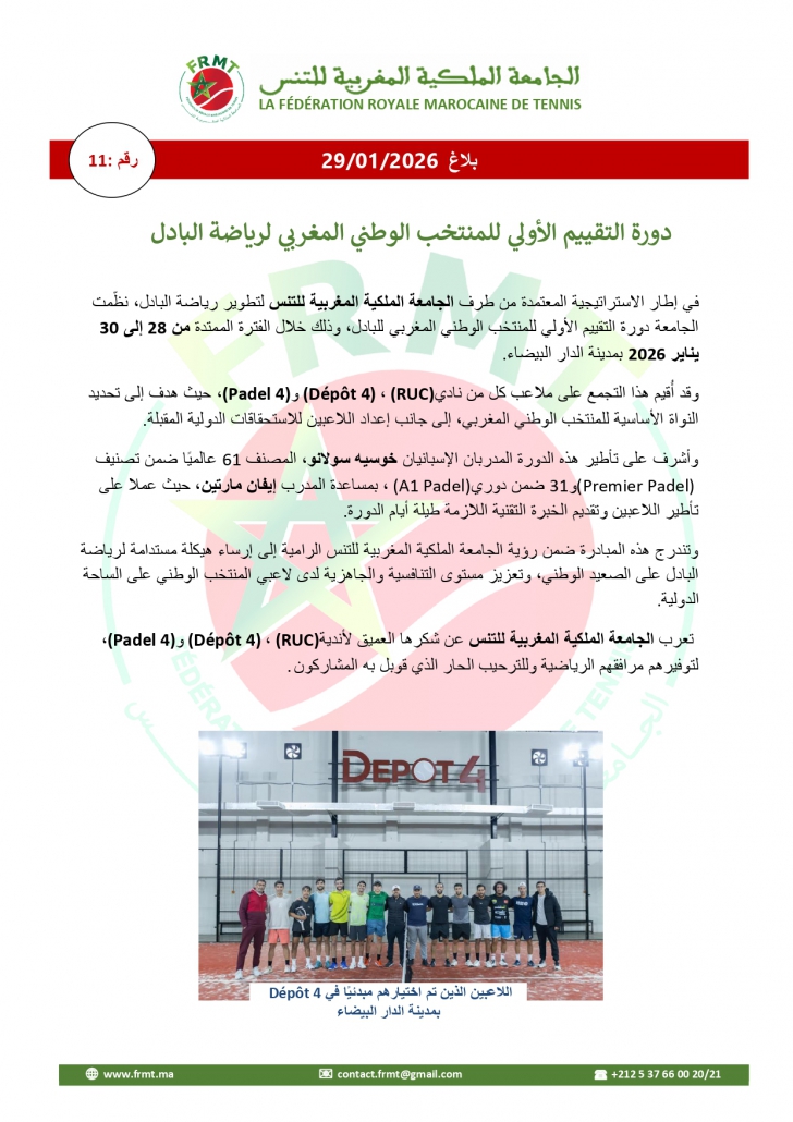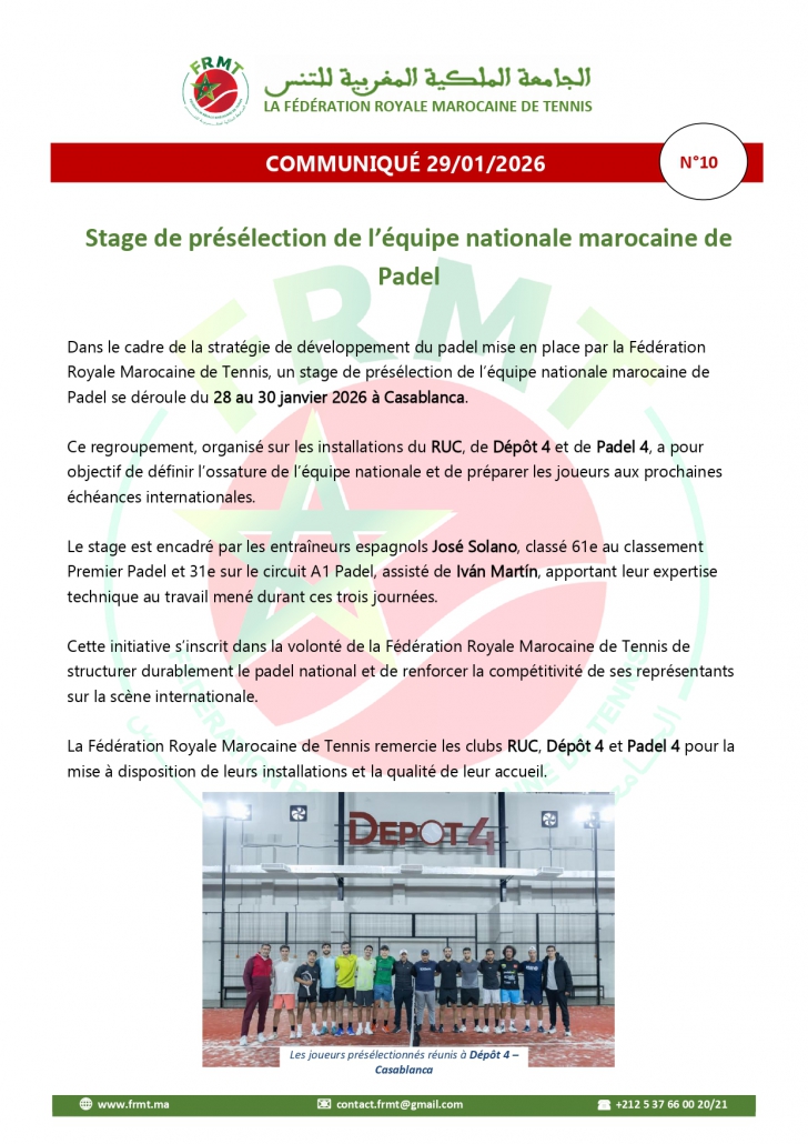 Stage de présélection de l’équipe nationale marocaine de Padel